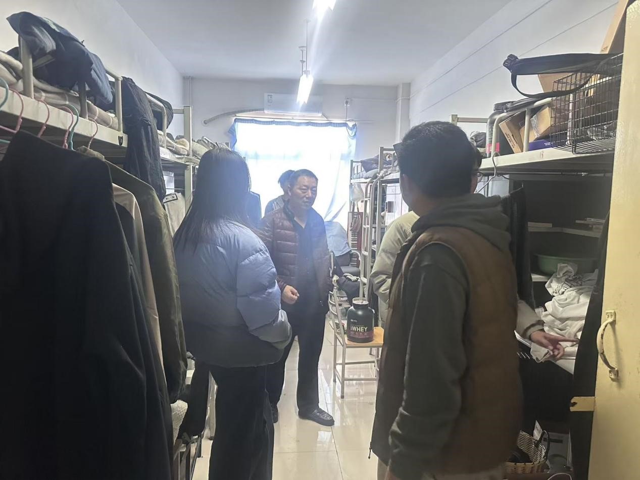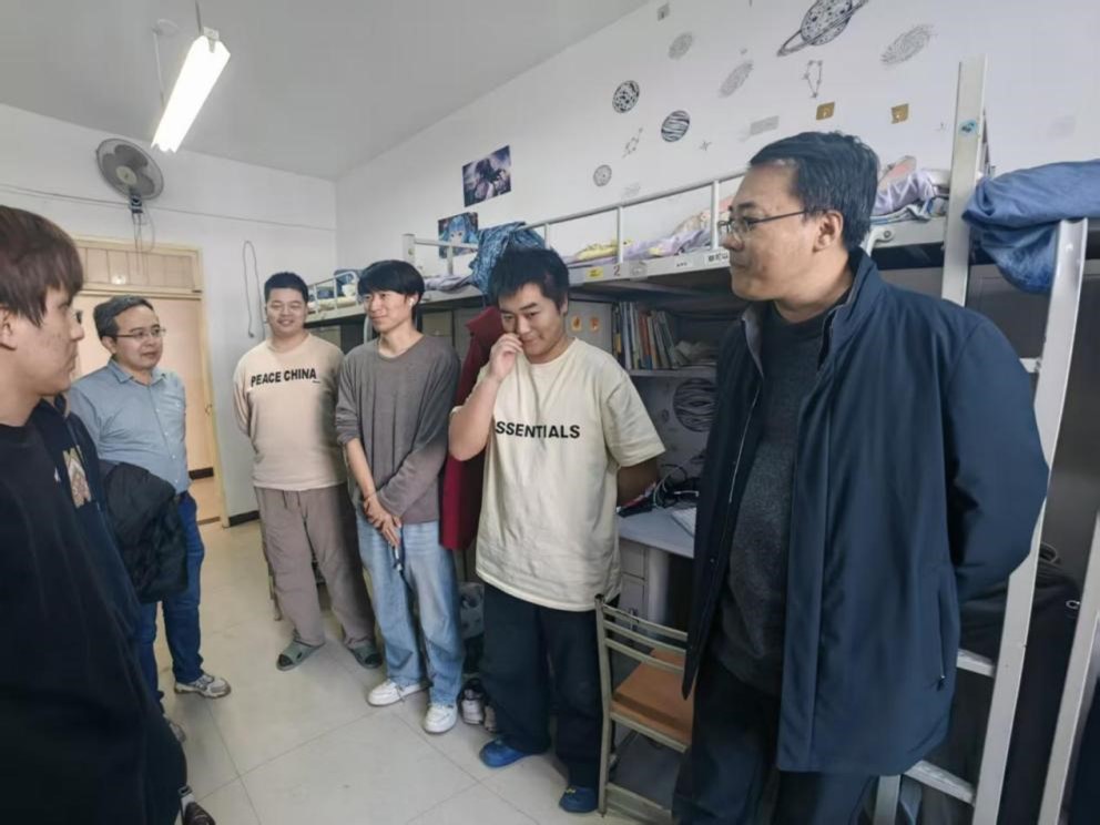 为深入了解学生学习生活状况,切实解决学生实际需求,11月25日,人工智能与计算机学院开展学生宿舍走访及安全检查活动。学院党委书记王建强、党委副书记郭胜忠带队走访本科生宿舍,副院长马天带队走访研究生宿舍,与同学们面对面交流,传递学院的关怀与问候。